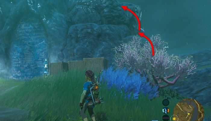 5. 우측 언덕을 올라가면 절벽 끝에 돌이 있으며, 돌을 들어올리면 코로그의 열매를 얻을 수 있습니다.