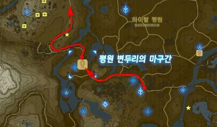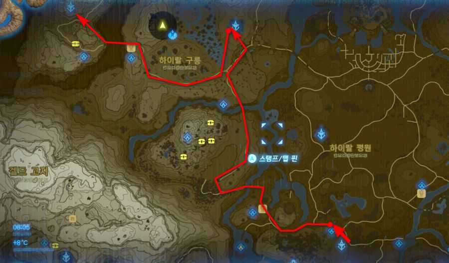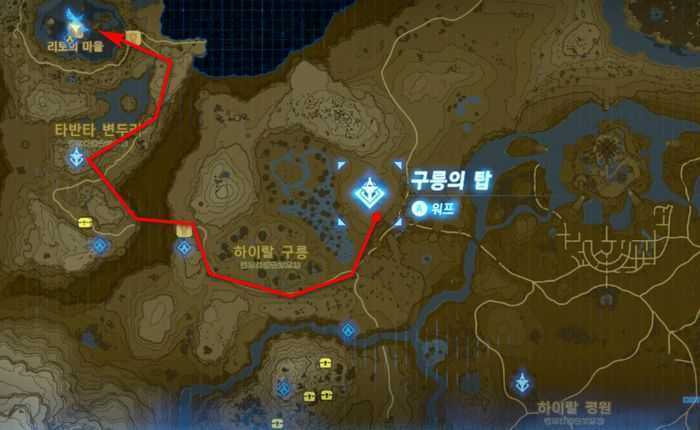 메인 챌린지 - 네 신수를 해방하라를 목적지로 설정한 뒤, 하이랄 대륙 맵의 북서쪽에 있는 목적지로 모험을 떠나게 됩니다.