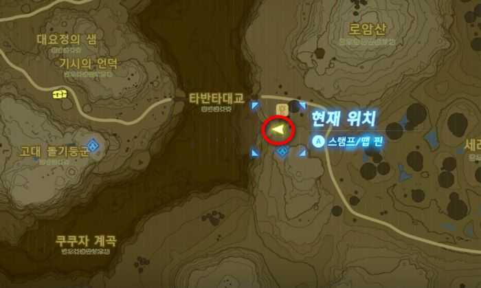 '고그'가 바라보고 있는 방향을 보면, 멀리 절벽에 번개 문양이 보일 것입니다. 그곳으로 향하면 됩니다.