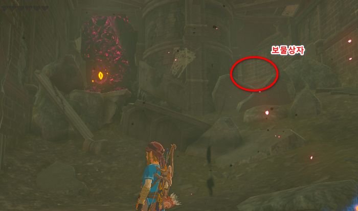 2. 우측 방에 눈알이 있으며, 기둥 우측에 보물상자가 있습니다. (고대 병기 화살 x3)