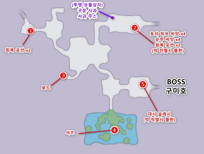 - 지도상의 1번위치 - 회복 포션 x2