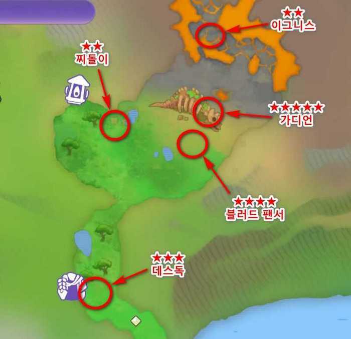 | ★★★★★ 미니 드래곤 | 별1~5의 지명 수배 몬스터가 나왔던 위치 중에 무작위 | 무작위 |