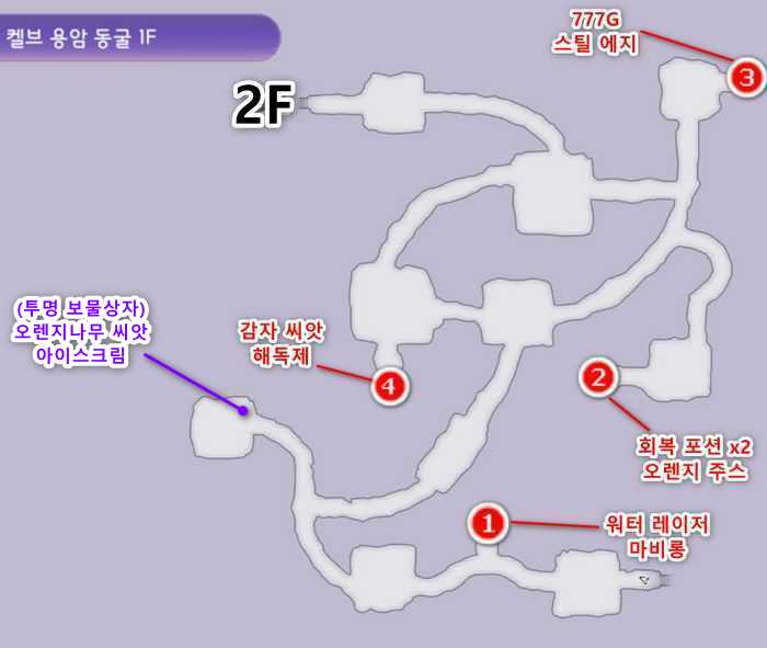 | 3. 켈브 용암 동굴 2F에서 남쪽에 있는 3F로 이동합니다. |