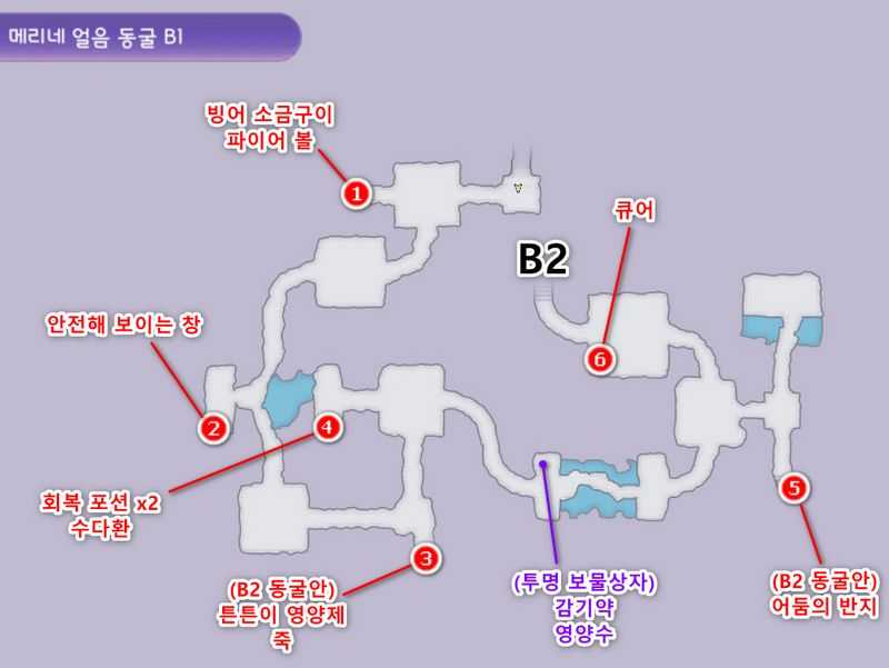 | 1. 메리네 얼음 동굴 B1에서 B2로 이동합니다. |