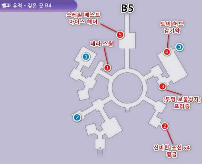 | 5. 북쪽 끝에 있는 벨파 유적 깊은 곳 B5로 이동합니다. |