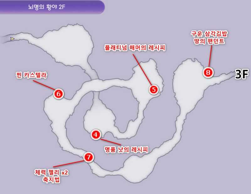 | 2. 뇌명의 황야 2F에서 동쪽 끝으로 이동하여 3F로 이동합니다. |