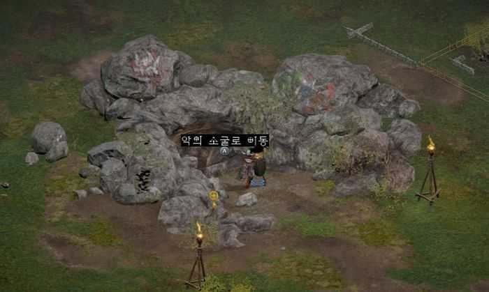 자매단 야영지(순간이동진) → 핏빛 황무지로 이동합니다. 핏빛 황무지에서 '악의 소굴' 입구를 발견할 수 있습니다.