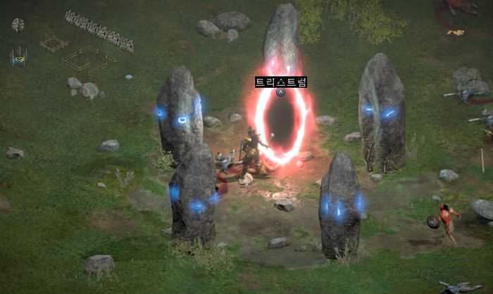 액트1 '바위 벌판'으로 이동한 뒤, 돌무덤 돌의 포털을 타고 '트리스트럼'으로 이동합니다. (액트1 퀘스트 '케인을 찾아서'를 진행했던 장소)