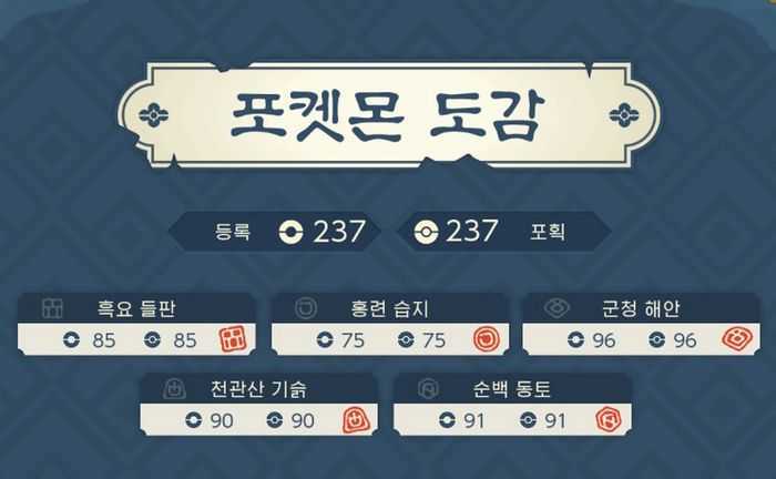 | 238 아르세우스 | 메인임무27을 진행중에 No.1~237 까지 모든 포켓몬을 포획해 도감을 완성한 후, 신오신전에서 포획가능 아르세우스를 만나러 가기위해 No.239~242는 포획할 필요가 없습니다. |