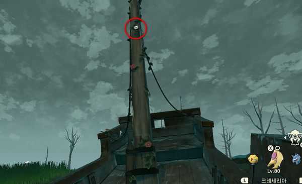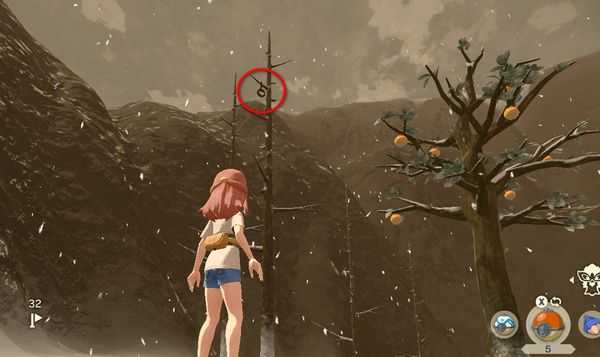 X - 거목의 전장 뒤쪽의 거대한 나무 위를 올라가면 나뭇가지 끝에 있습니다.
