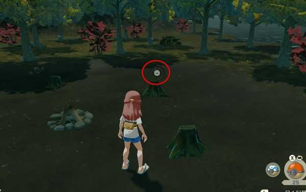 D - 습지기지 북쪽, 모닥불 옆 나무 그루터기 위에 있습니다.