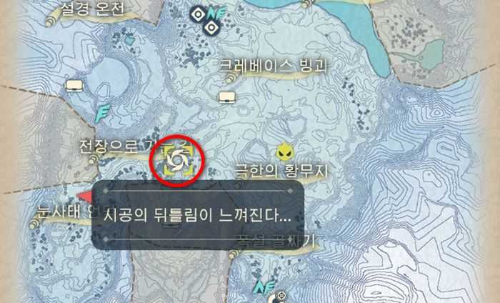 메시지 출력후, 지도를 켜면 지도상에 소용돌이 아이콘이 나타나게 됩니다. 따라서 베이스캠프에서 방치해놓고, 5분마다 지도를 켜서 소용돌이 아이콘이 나타났는지 확인해주시면 편리합니다.