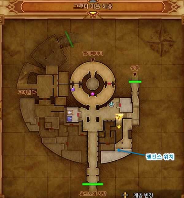 2. 델긴스는 그로타 마을 하층 남동쪽 끝에 있습니다.
