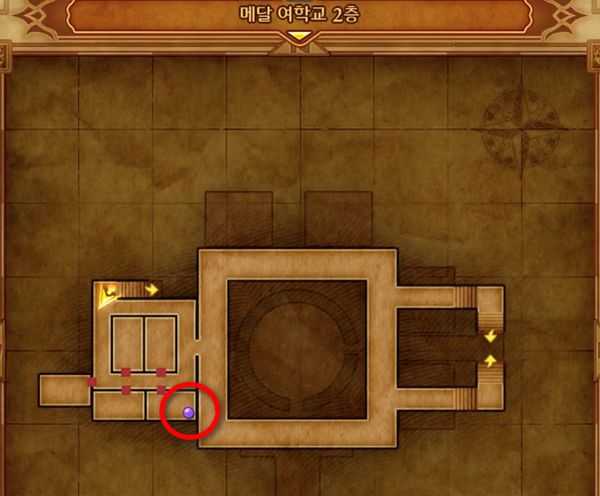- 메달 여학교 2층 동쪽의 큰 망치를 든 메이플과 대화하면, 힌트를 줍니다.
