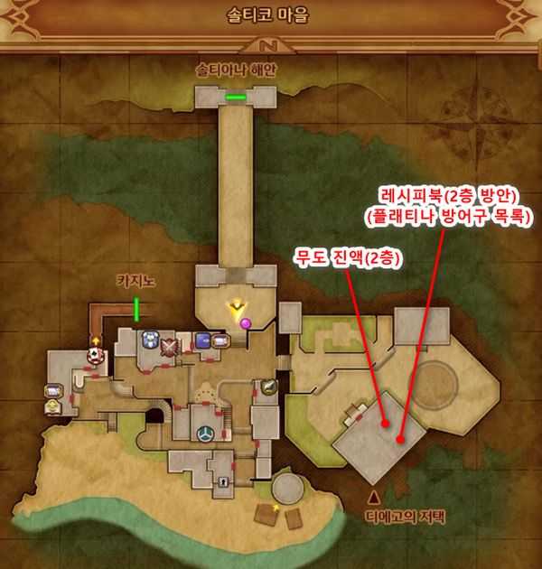 - 방안의 책장을 조사하면 레시피북 '플래티나 방어구 목록'(플래티나 헤드, 플래티나 메일의 레시피) 획득