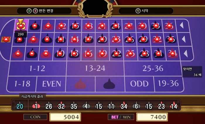 - 200코인룰렛의 경우, 36개숫자 + 보물상자에 모두한칸씩 배팅하면 총 7400개의 코인이 필요하며, 잭팟이 터지면 7200개의 코인을 보상으로 받으므로, 200씩 줄어들 것입니다.