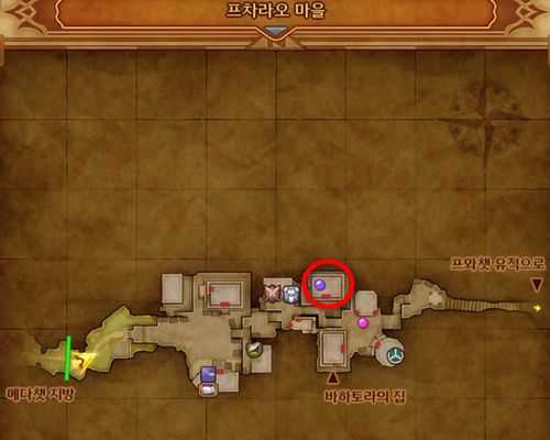 1. 프차라오 마을 무기/방어구 상점 우측의 민가 2층 침대에 누워있는 여자아이와 대화하여 퀘스트를 수주받습니다.