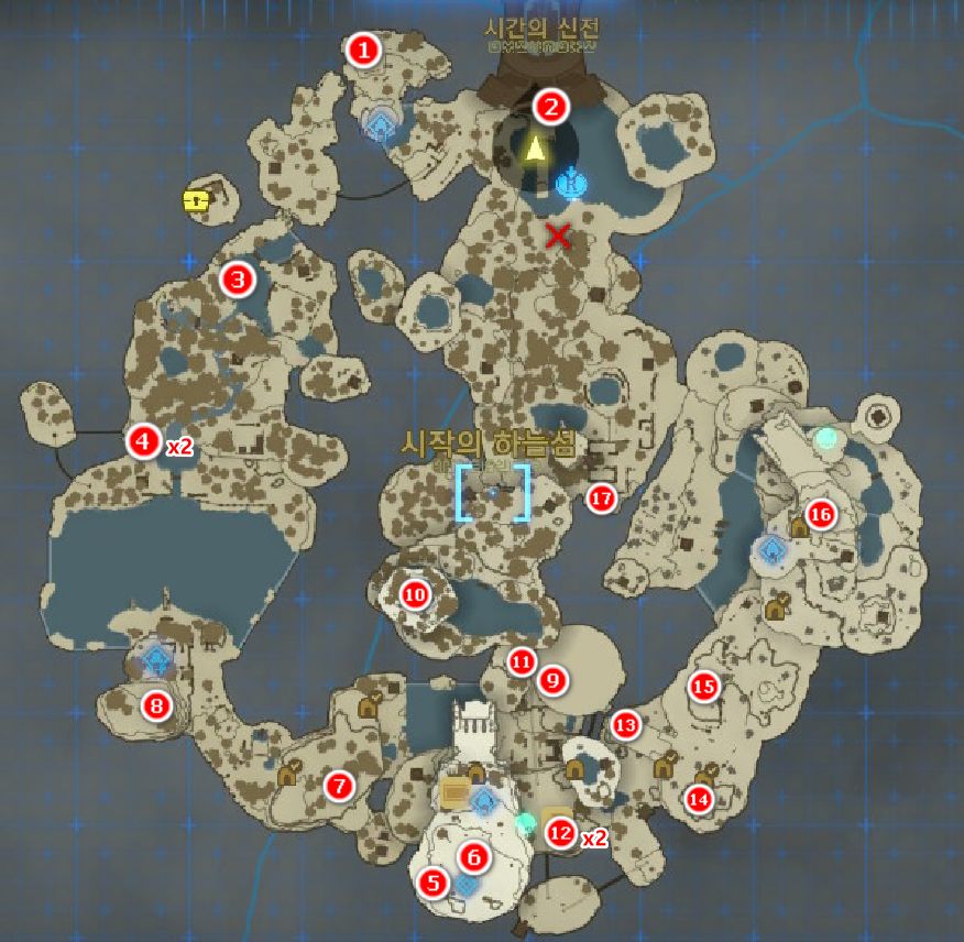 그런데 아래 이미지의 4번과 12번 위치의 경우, 한번에 2개씩 획득할 수 있기 때문에, 아래 이미지에서는 17군데 위치가 표시되어 있습니다.