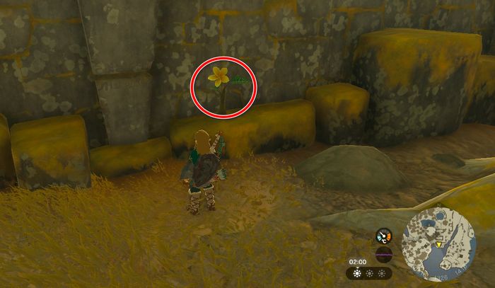 17번 위치에 도착하면 부서진 건물 안쪽에 노란색 꽃이 보일 것입니다.