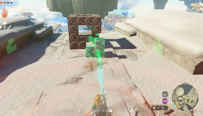 아래 이미지와 같은 끊어진 다리로 오면, 퍼즐이 있으므로, 근처의 조각을 울트라 핸드로 회전시켜 맞춰 넣으면 코로그 열매