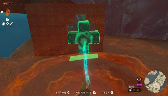 트레루프를 활용해, 나무 그루터기 꼭대기로 간 뒤, 비어있는 돌을 채우면 코로그 열매