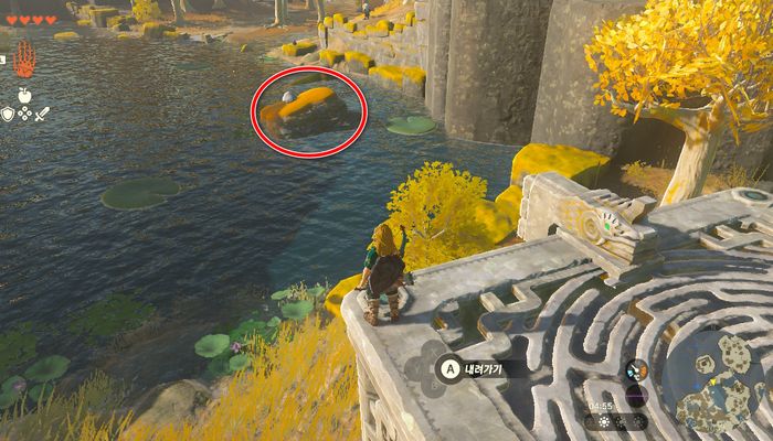 연못의 작은 섬 위에 돌이 있으므로, 돌을 들어올리면 코로그 열매